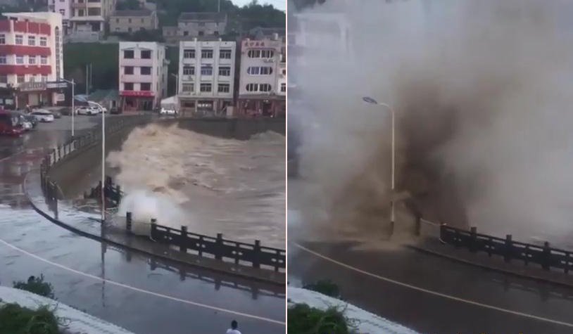 Clip: Bão Maria đổ bộ, sóng khổng lồ tấn công Trung Quốc