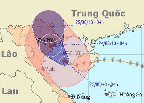 | Theo dự kiến, bão sẽ đổ bộ vào đất liền rạng sáng 24/6 - Ảnh: NCHMF |
