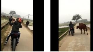 Không chỉ vậy, con bò còn như muốn húc ngã người đi xe này. Đoạn clip được chia sẻ trên một diễn đàn về ô tô trên facebook nhanh chóng thu hút được sự quan tâm.
