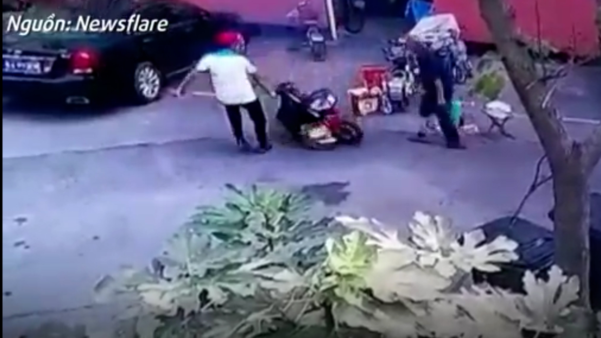 Clip: Bất chấp xe máy sắp nổ, nhân viên vệ sinh dũng cảm kéo ra xa để 'cứu' ô tô