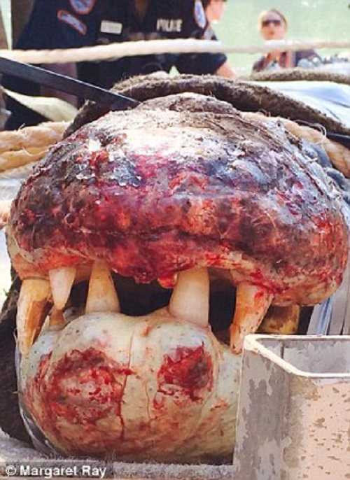 | Bộ hàm gớm ghiếc của con 'quái vật' vẫn còn bê bết máu |