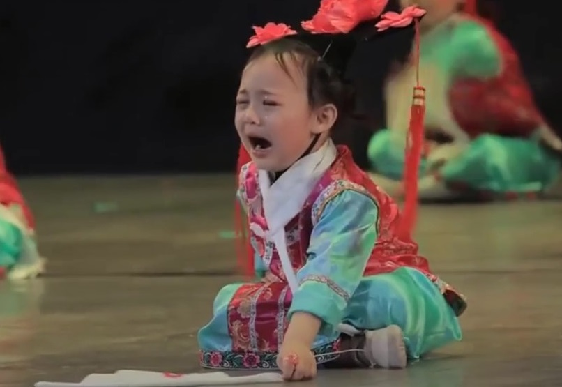 Clip: Bé gái khóc như mưa khi múa trên sân khấu