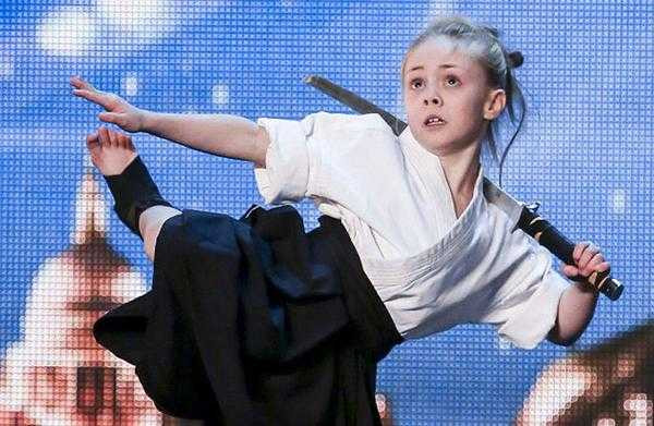 Bé gái trong trang phục võ sĩ samurai tự tin biểu diễn màn múa kiếm katana thuần thục khiến ban giám khảo và khán giả phải kinh ngạc và nể phục.