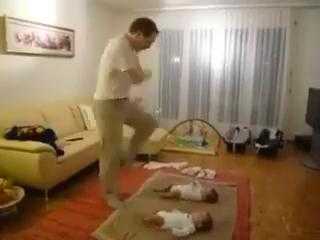 Clip bé sơ sinh ‘hành quân’ cùng bố siêu hài hước