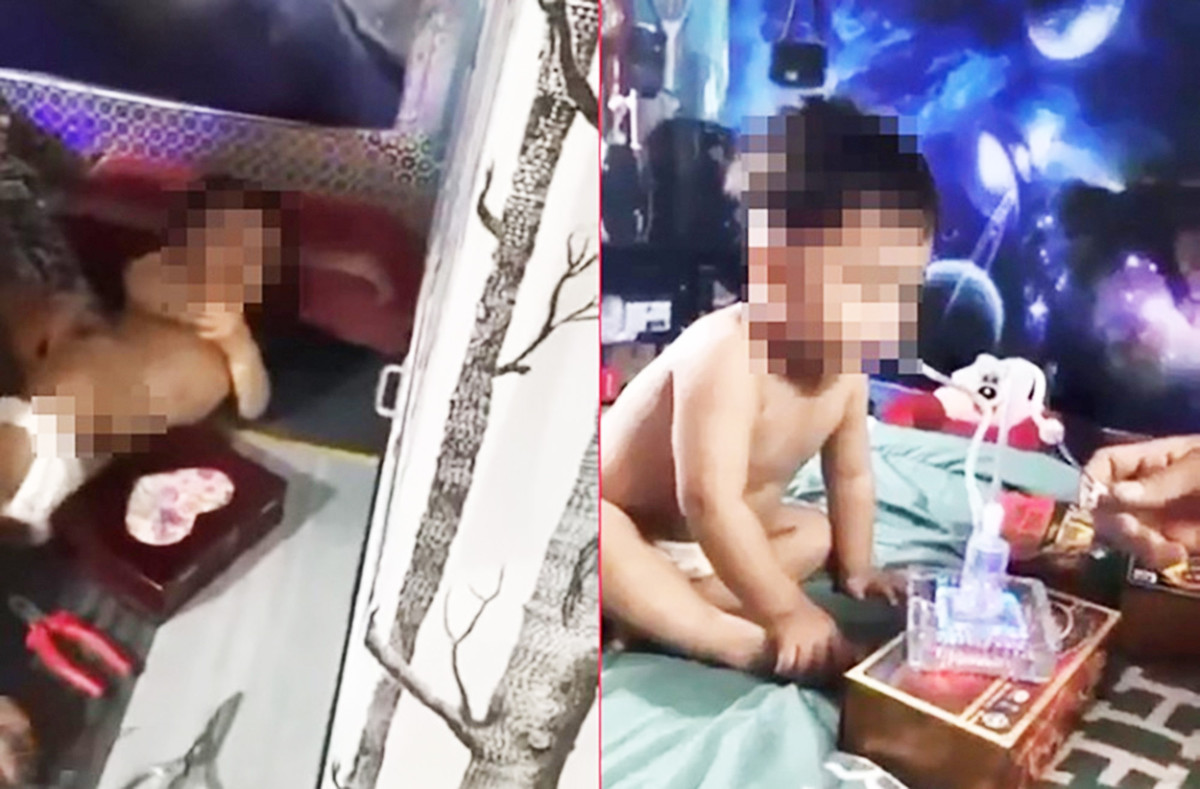 Thông tin ban đầu, tối 24/3, mạng xã hội lan truyền clip ghi lại cảnh bé trai ở trần, mặc bỉm, bị người đàn ông xăm trổ hành hạ, ép sử dụng chất nghi là ma túy đá.