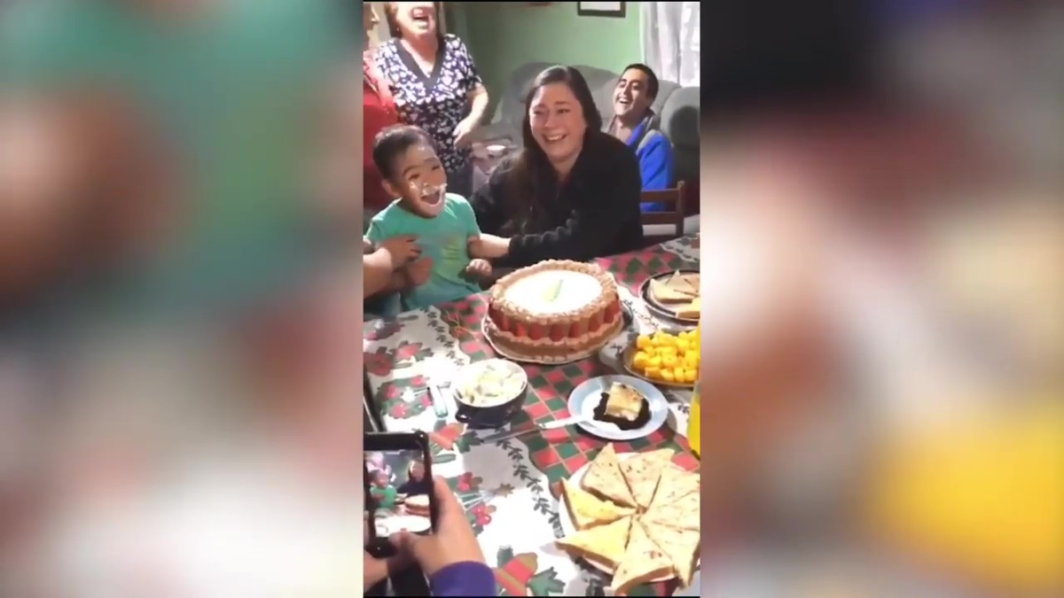 Thay vì chờ đợi trò đùa của mọi người, cậu bé tự mình úp mặt vào chiếc bánh kem sinh nhật khiến cả nhà vừa kinh ngạc vừa buồn cười.