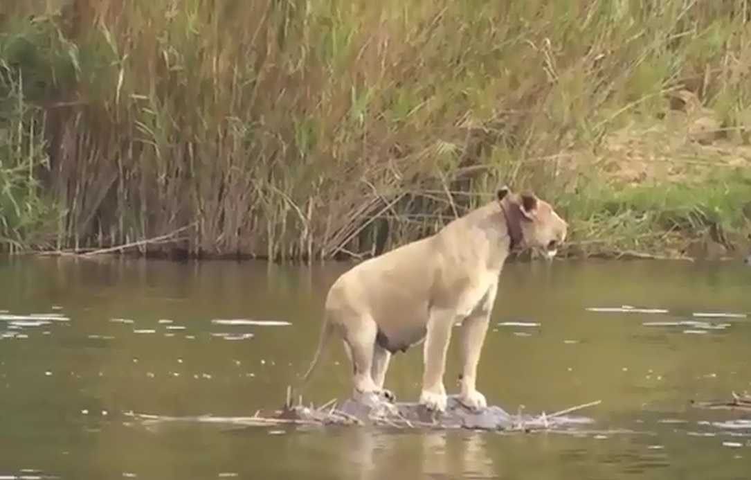 con bị một con cá sấu bắt mất, sư tử mẹ trở nên bấn loạn và phát cuồng, thậm chí nó còn lao cả xuống nước để tìm con.