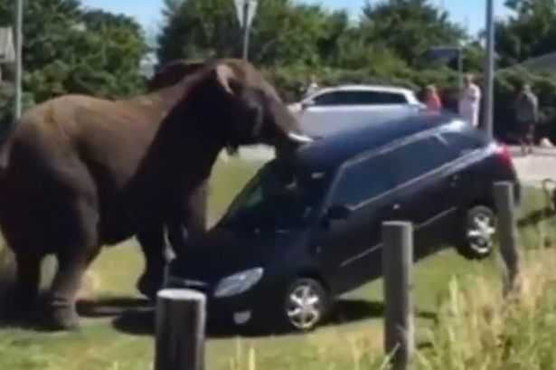 Trên đường đi tắm biển về, ba con voi trong một rạp xiếc đã bất ngờ nổi nóng tấn công một chiếc ô tô và lùa theo một số người dân gần đó.
