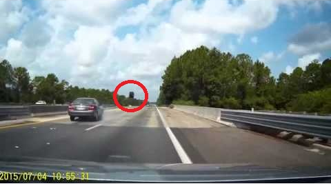 Ở đầu clip, chiếc xe tải màu đỏ phía ngược chiều dường như bị thiếu bánh, ngay sau đó bánh xe tải bất ngờ xuất hiện và đâm trực diện vào xe con đang đi tới.