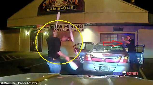 Để minh oan cho mình, Puckett đã lấy một bộ chày tung hứng từ trong xe ra và bắt đầu biểu diễn khiến 2 sĩ quan cảnh sát tròn mắt thích thú, thậm chí còn dùng điện thoại quay hình lại.