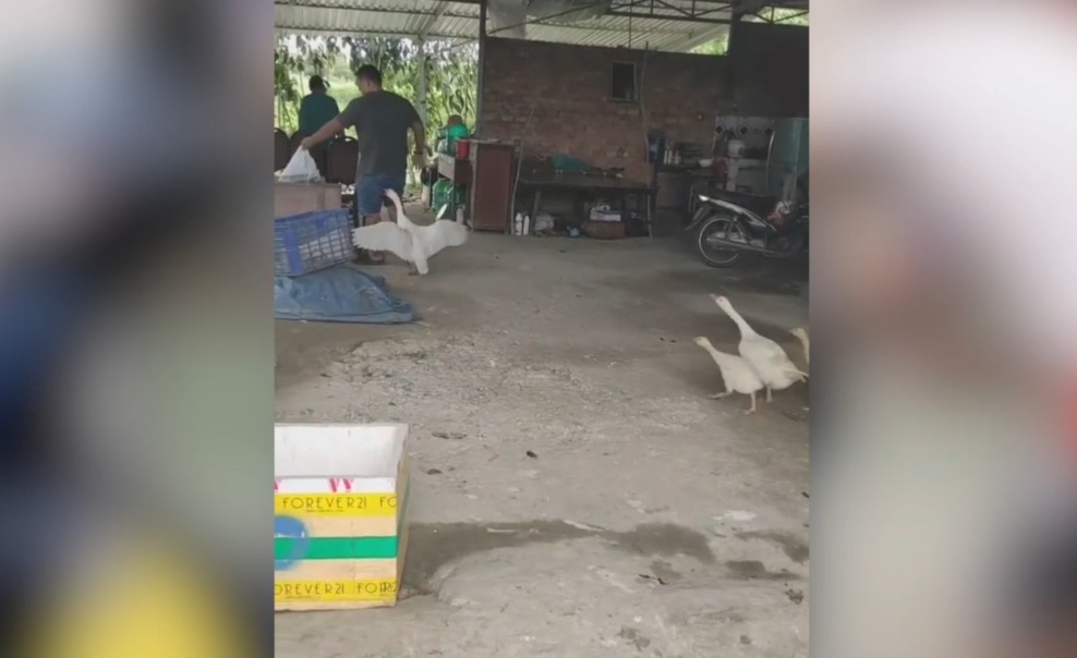 Clip: Bị ngỗng mổ, người đàn ông nhảy tưng tưng