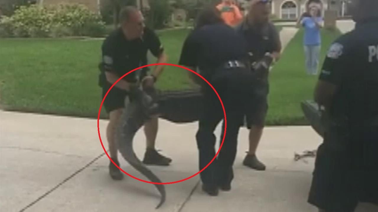 Sự cố xảy ra khi các cảnh sát cố khống chế, đưa con cá sấu ra khỏi một khu dân cư ở TP Ocoee, bang Florida, Mỹ.