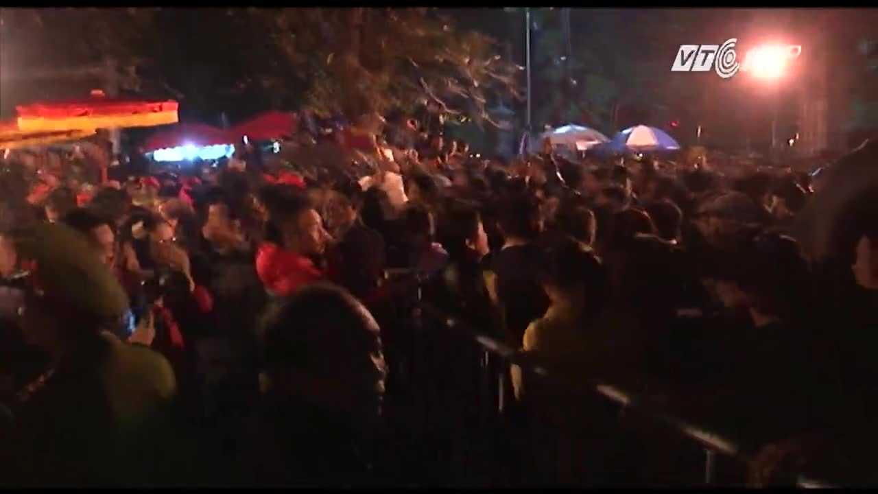 Mặc dù phải đến 5h sáng nay công tác phát ấn mới được tiến hành song nhiều người đã có mặt từ sớm. Và ngay sau nghi lễ khai ấn lúc 0h, hàng vạn người dân, du khách đã trèo rào, xô đẩy bên trong phủ Thiên Trường quyết tâm sờ vào các đồ vật trên ban thờ lấy may.