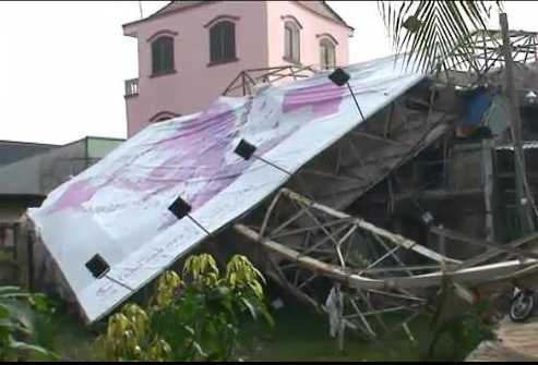 Clip: Biển quảng cáo 2 tấn đè nát 6 nhà dân