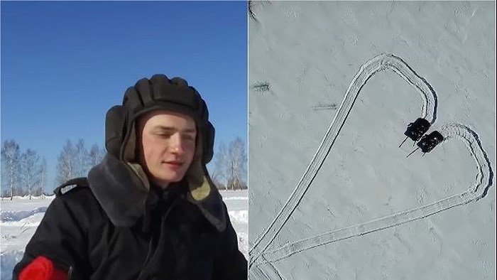 Clip: Binh sĩ Nga vẽ trái tim trên tuyết trắng bằng xe tăng chúc mừng 8/3