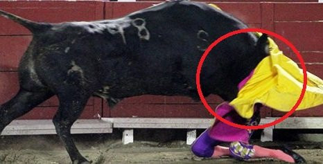 Sự cố kinh hoàng xảy ra tại TP Puebla, Mexico. Nữ võ sỹ Hilda Tenorio, 32 tuổi bị con bò tót nặng 580 kg tấn công sau khi cô vẫy chiếc khăn choàng màu vàng và hồng.