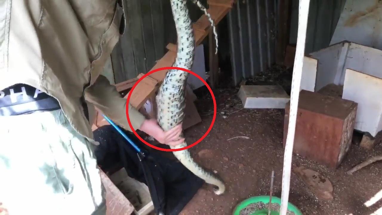 Một con trăn bò vào chuồng gà của nhà dân ở thị trấn Pomona, bang Queensland, Australia ăn trộm gà, tuy nhiên nó đã bị tóm sống.