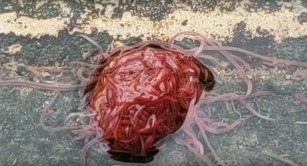 Sau khi xem clip, nhiều cư dân mạng phỏng đoán đây là những con sâu bùn, còn gọi là sâu nước thải (tubifex worms). Khi rơi xuống nước, trong môi trường không có đất, chúng sẽ cuộn chặt vào nhau thành một cụm lớn để tồn tại.