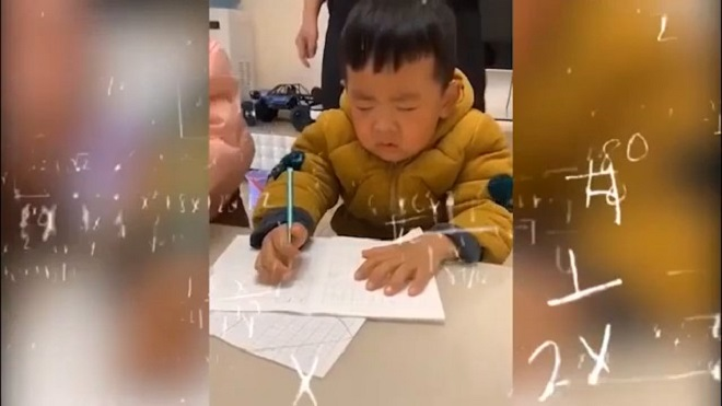 Clip: Buồn ngủ, bé trai gật lên gật xuống khi học bài