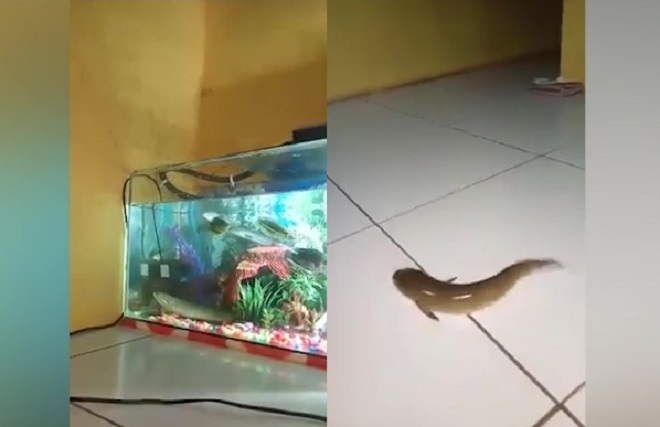 Clip: Cá cảnh to đùng nhảy vọt tận trần nhà khiến chủ hết hồn