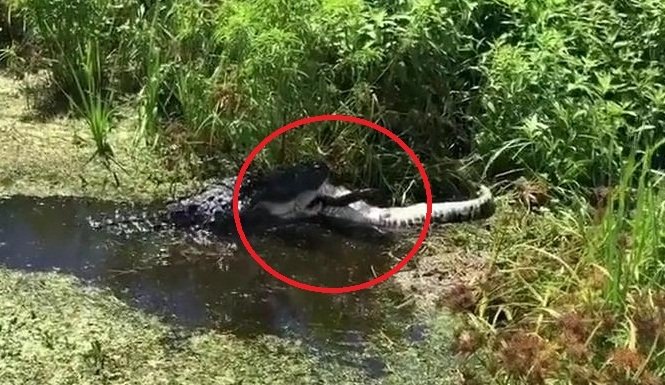 Con cá sấu dài hơn 4m khiến người chứng kiến sốc nặng khi ăn tươi nuốt sống một con cá sấu nhỏ hơn trên hồ hồ Apopka, bang Florida, Mỹ.