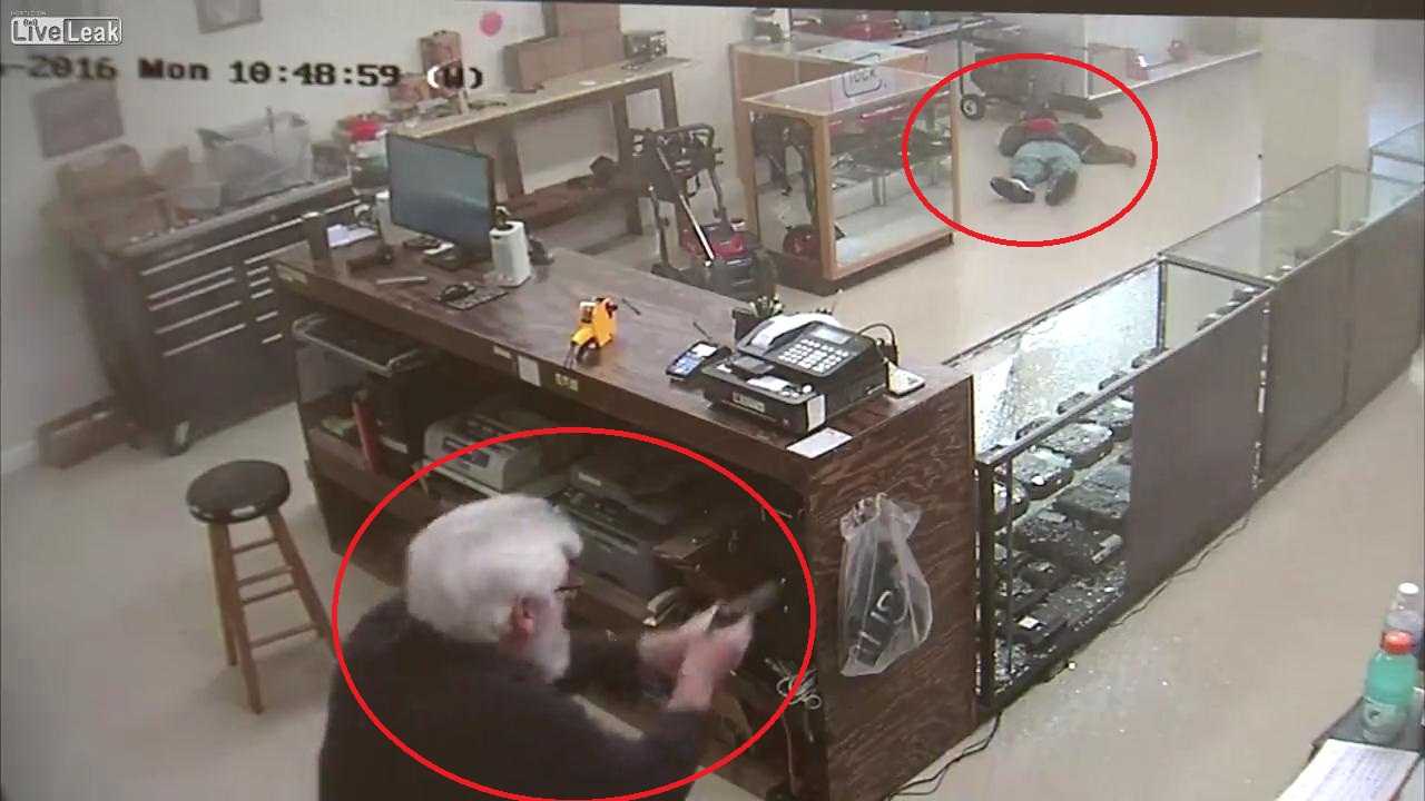 10/01/2017 11:34:00 +07:002 tên cướp có vũ trang xông vào tiệm súng định cướp, ngay lập tức bị nhân viên cửa hàng rút súng ra bắn khiến một tên chết ngay tại chỗ, tên còn lại hoảng hồn tháo chạy.