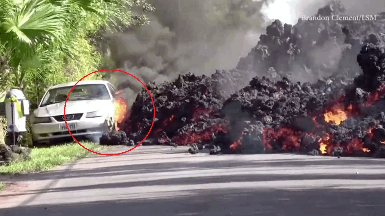 Cận cảnh sức mạnh không thể cản phá của dòng dung nham núi lửa Kilauea chậm rãi "nuốt sống" xe và nhà tại Hawaii, Mỹ.
