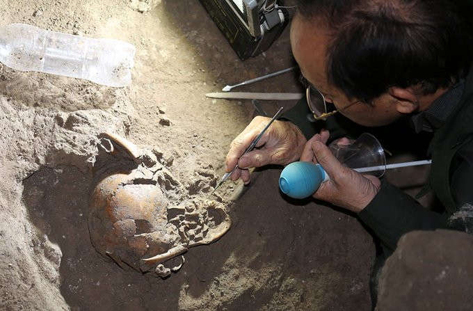 Hố thăm dò phát hiện di cốt 10 người được chôn, trong đó có ba di cốt hoàn chỉnh gồm hai người lớn, một trẻ em 4 tuổi.