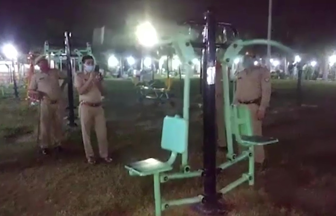 Đang tuần tra trong công viên, nhóm cảnh sát giật mình vì gặp phải cảnh tượng kỳ lạ: Hai chiếc máy tập không người liên tục tự hoạt động.