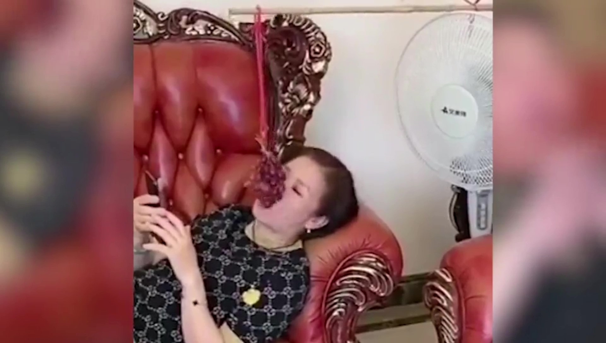 Để có thể vừa nằm lướt điện thoại bằng cả 2 tay vừa ăn nho, cặp vợ chồng nghĩ ra phương pháp cực kỳ "lầy".