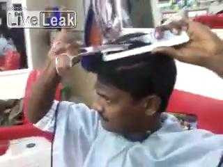 (VTC News) - Người đàn ông một tay cầm lược, tay kia cầm kéo tự cắt tóc cho mình.