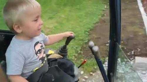 Clip cậu bé 3 tuổi lái máy xúc