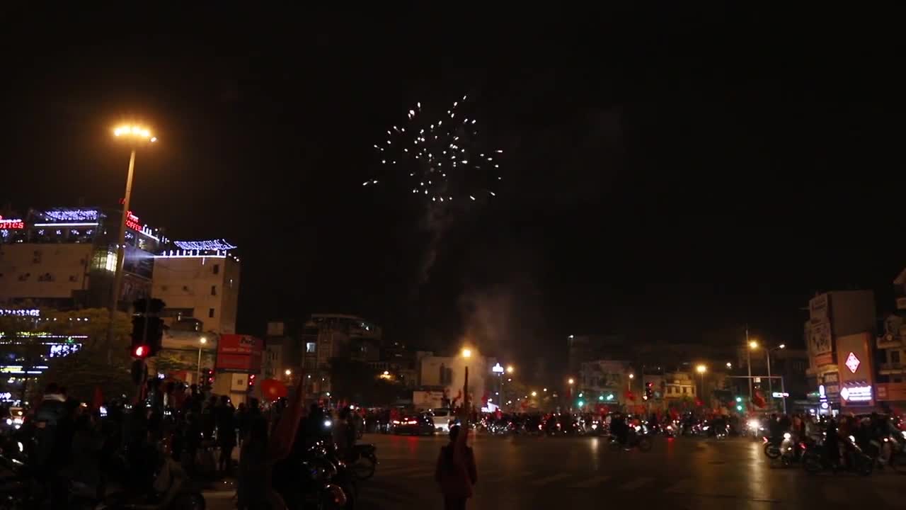 Để mừng chức vô địch AFF Cup, CĐV tại Hà Nội đã đốt pháo hoa ăn mừng dù điều này không được pháp luật cho phép.