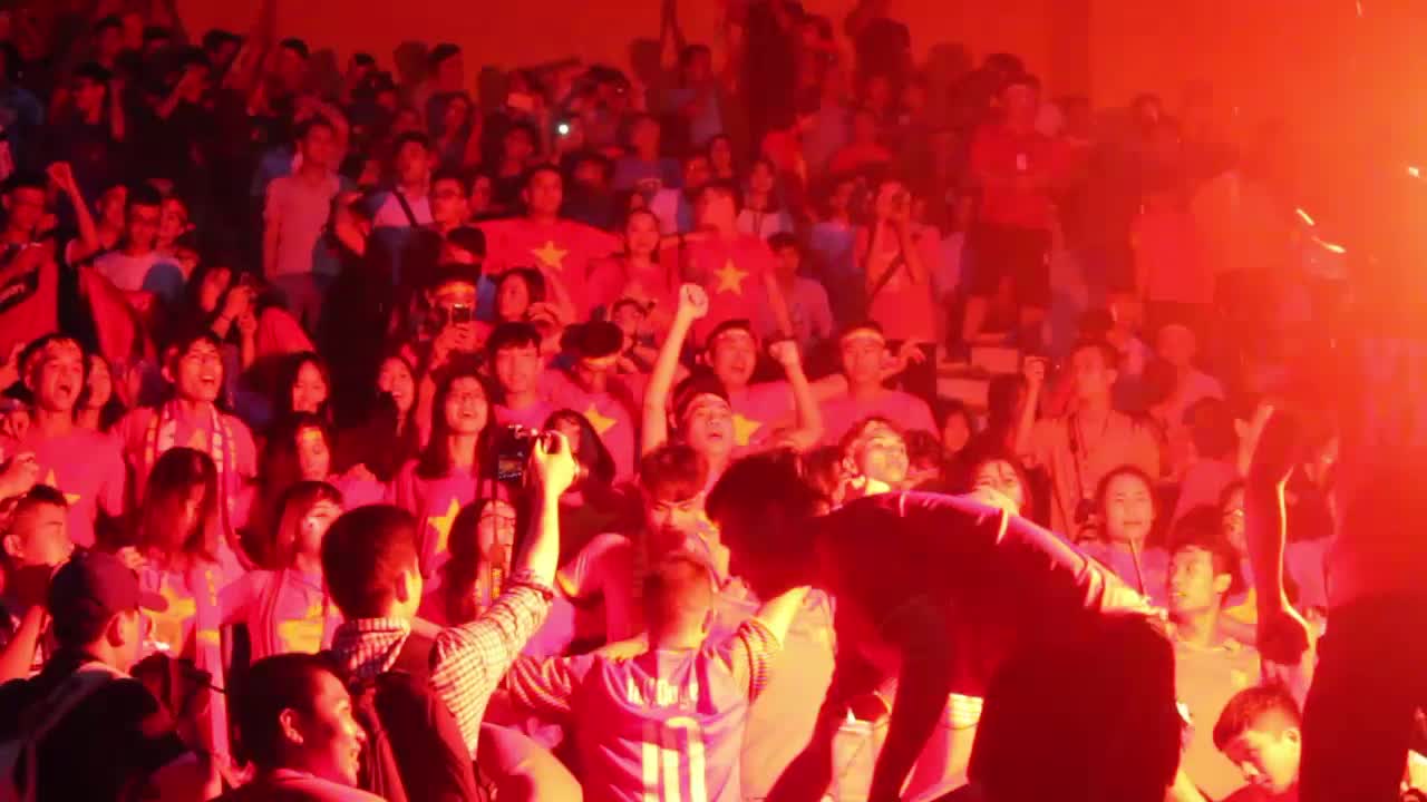 Dù trời đổ mưa, song hàng trăm cổ động viên Hà Nội trên sân Hàng Đẫy vẫn hò hét, nhiệt tình cổ vũ cho Olympic Việt Nam.