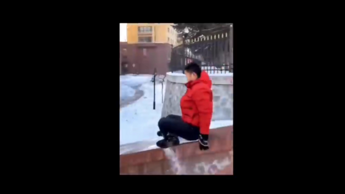 Dùng chiếc ván để trượt từ thành tường xuống đất, chàng trai ngã sấp mặt khi không làm chủ được tốc độ và điểm dừng.