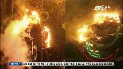 Khói lửa bốc lên, các vật liệu bị cháy rơi xuống đường khiến nhiều người hoảng sợ. Nguyên nhân vụ cháy được xác định do chập điện.