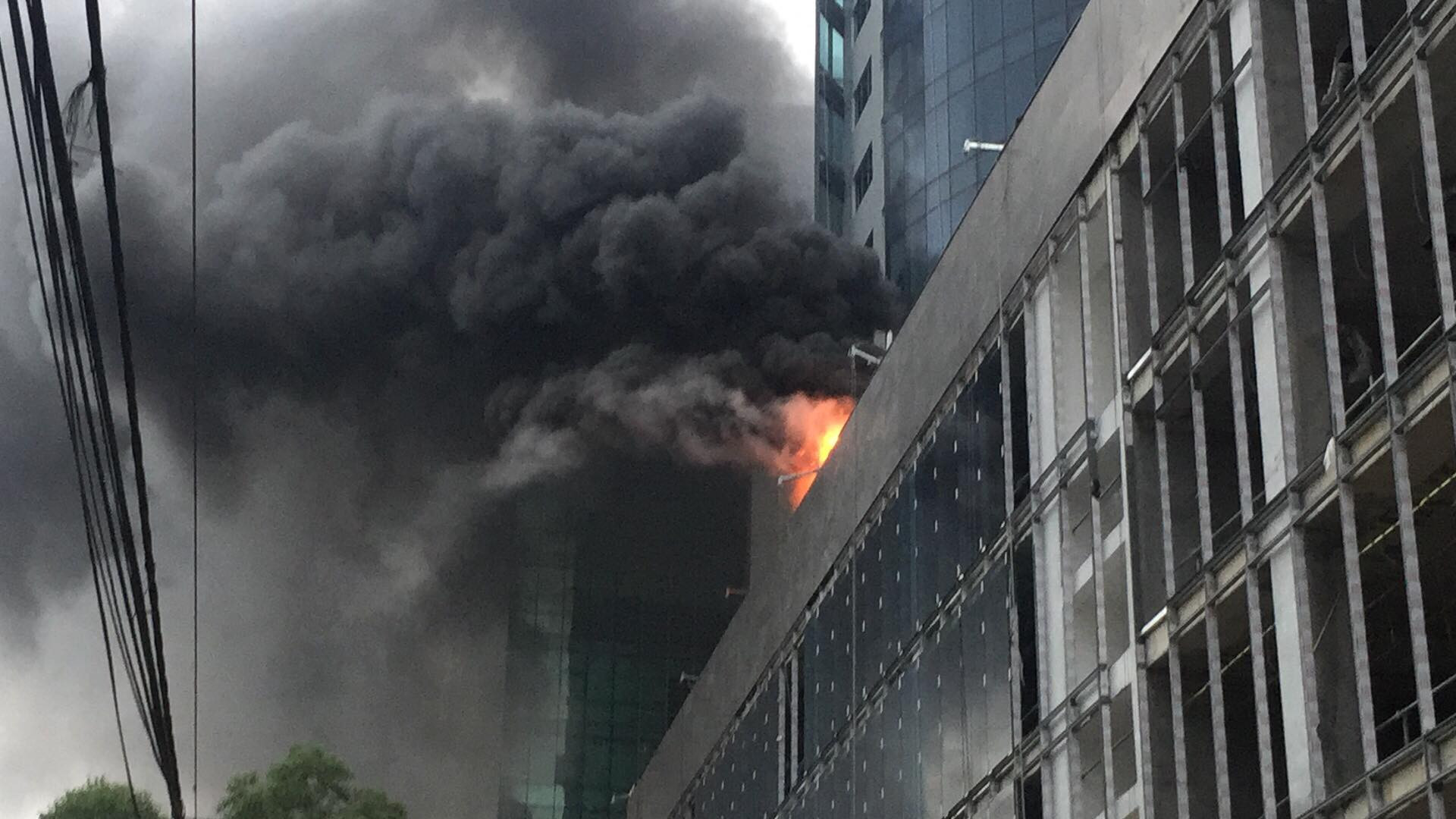 Clip: Cháy tòa nhà đang xây ở Cầu Giấy - Hà Nội, khói đen cuồn cuộn kín trời