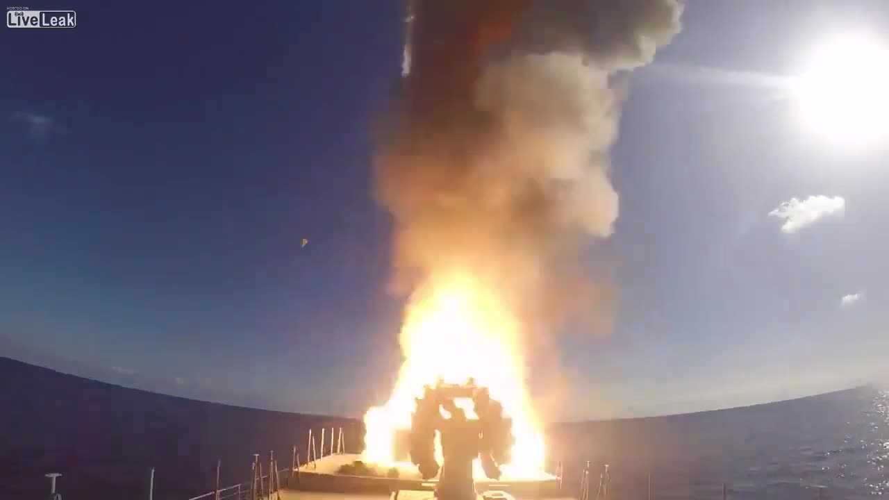 Clip: Chiến hạm Nga phóng loạt tên lửa hành trình diệt IS từ trên biển