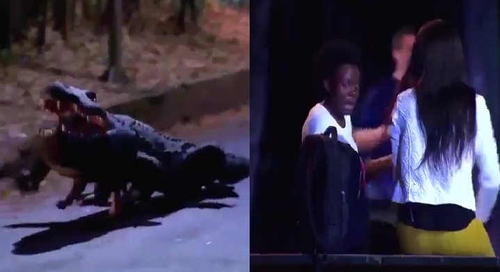 Người đi đường đều vắt lên cổ chạy khi thấy chú "cá sấu" lang thang giữa đường.