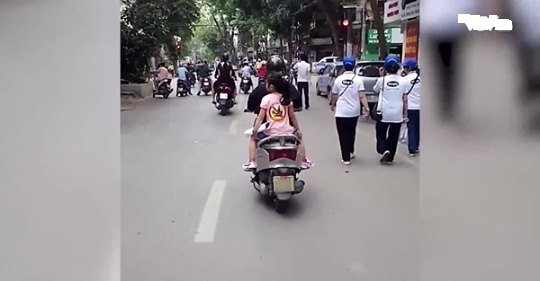 Cho con mặc áo “Đã uống bia rượu – Không lái xe” nhưng người mẹ vẫn ngang nhiên vi phạm luật giao thông.