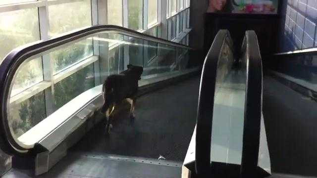 (VTC News) - Chú chó bối rối bước chậm chạp ngược chiều thang cuốn, đi mãi mà vẫn ở nguyên vị trí.