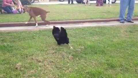 Con gà chỉ mới 'dọa' chút con chó đã chạy bán sống bán chết như vừa gặp ma.