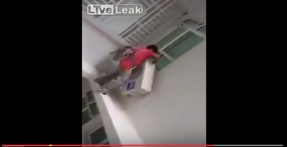 03/09/2015 04:16:00 +07:00Người thợ ‘Ninja’ ôm điều hòa trong tay và đứng trên gờ tường cao ngất để lắp đặt mà không có bất kỳ phương tiện bảo hộ nào.