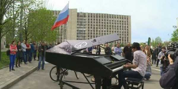 Clip: Chơi đàn trước tòa nhà chính quyền ở Donetsk