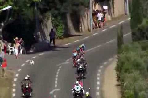 (VTC News) - Giữa rừng xe đua của các cuarơ tại giải Tour de France, một chú chó vẫn cả gan lao ra giữa đường để "đọ sức" cùng những chiến mã thép.