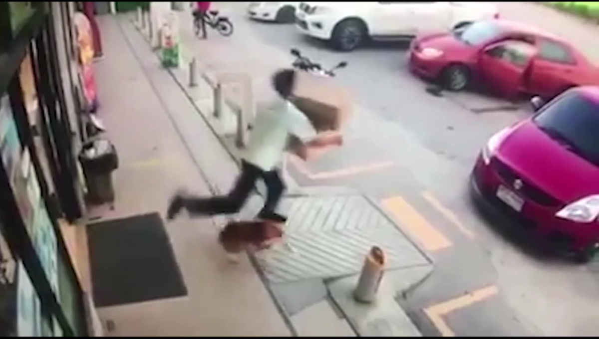 Clip: Chú chó làm chàng trai ngã liểng xiểng