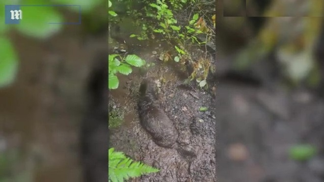 Quyết tìm bằng được quả bóng của mình bị rơi xuống đầm, chú chó dầm mình, lặn lội trong bùn lầy đen kịt.