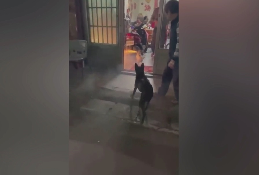 Chú chó lao tới ngậm cây pháo hoa vừa được châm lửa rồi hớn hở xông vào nhà khiến mọi người vừa hoảng hồn vừa buồn cười.
