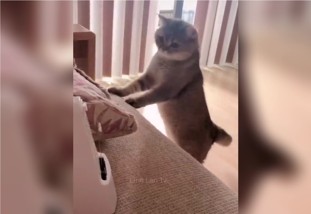 Clip: Mèo sững sờ khi chàng trọc chải đầu