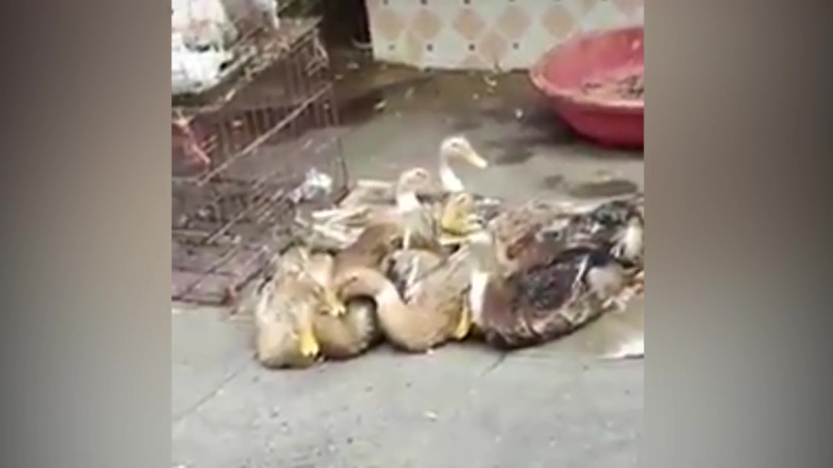 Clip: Đàn vịt để lại nghìn dấu chân trên đường bê tông mới đổ